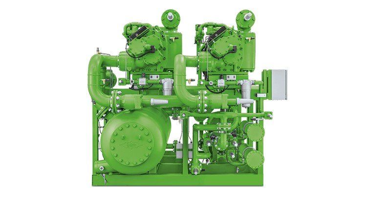 Le unità di compressione BITZER (ACP) ad ammoniaca sono progettate per superare gli elevati standard di efficienza e affidabilità imposti dalla refrigerazione industriale. Le ACP includono compressori, motori, separatori d'olio e circuiti di raffreddamento dell'olio opzionali, oltre a controller opzionali e inverter. Progettate con l'obiettivo di garantire al cliente bassi costi di mantenimento, ogni ACP può includere fino a tre compressori e può raggiungere una capacità di raffreddamento fino a 3 MW (-10/35°C). Le ACP sono dotate di regolatore di pressione di scarico di serie e di una vasta gamma di opzioni tra cui l'economizzatore.